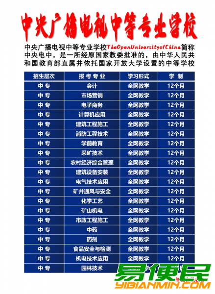 (一)电大中专一年制报考专业